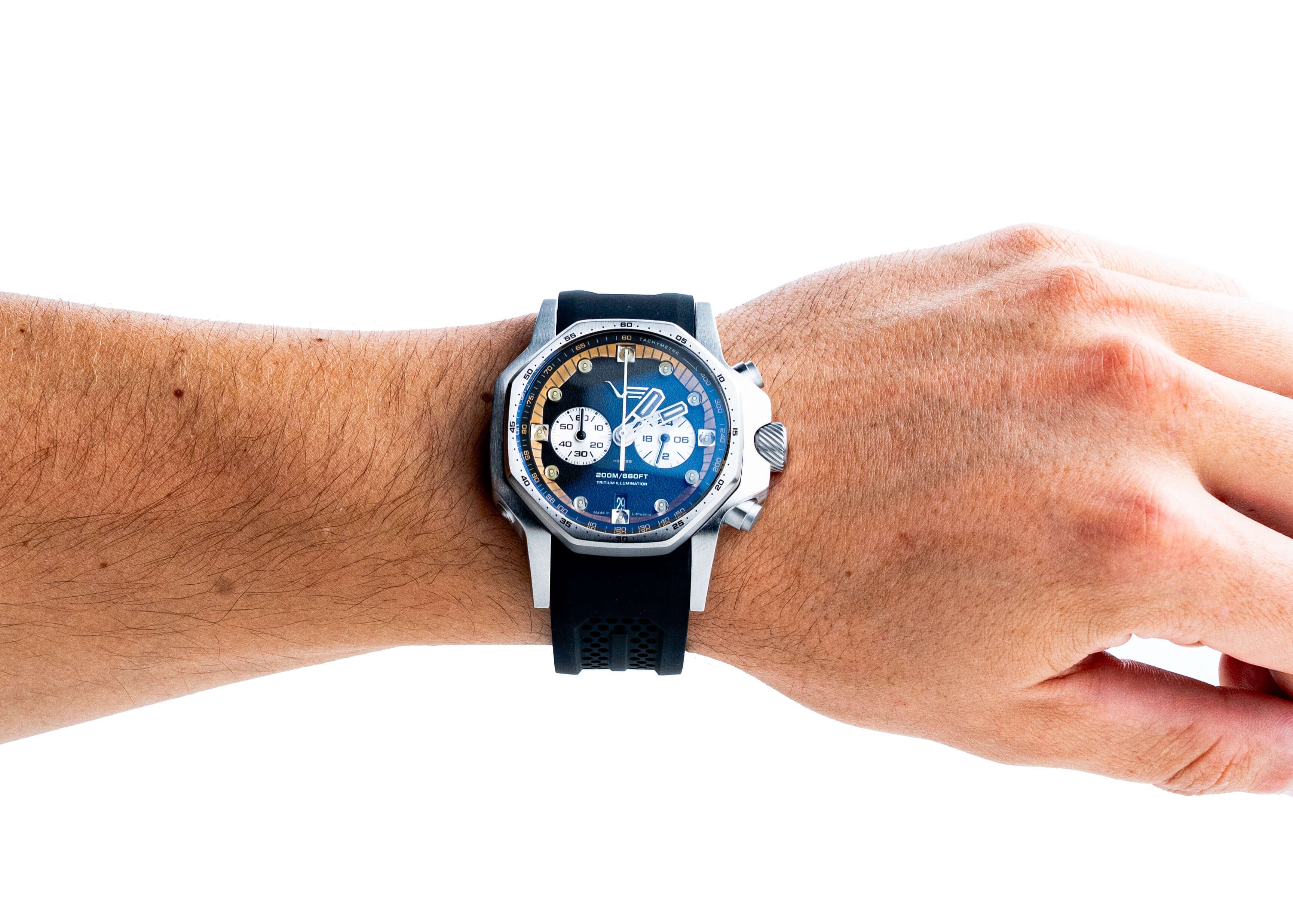 - Всеки часовник се доставя в Удароустойчива и водоустойчива червена VE суха кутия XL, който може да се трансформира в колекционерска кутия за до четири часовника.