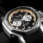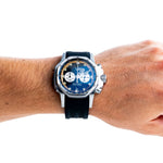 - ФУНКЦИИ: Часове, минути, дата, централна секундна стрелка хронограф, 60-минутен хронограф, 24-часов индикатор