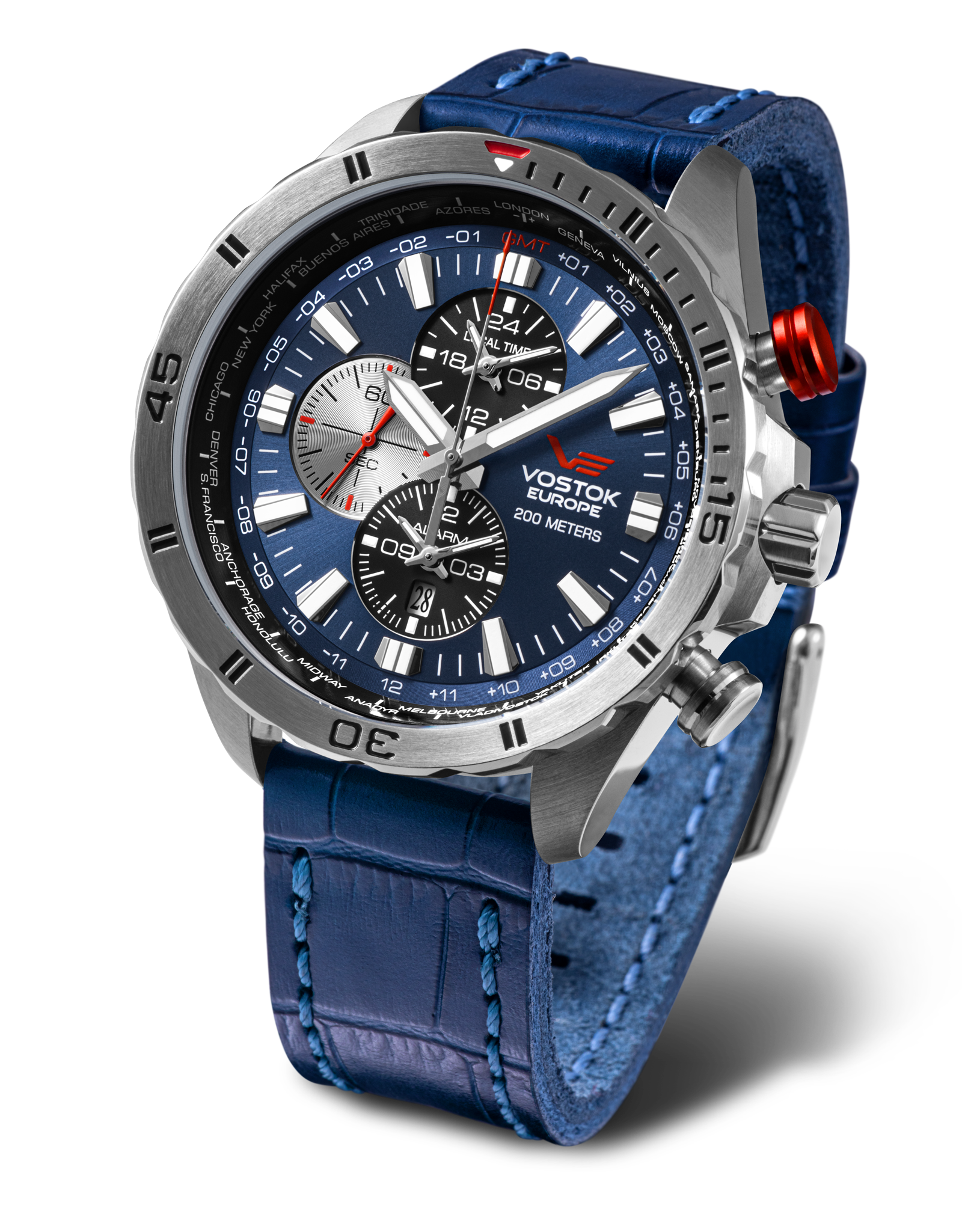 - FUNKCJE:Godziny, minuty, sekundy, data, wskaźnik drugiej strefy czasowej w formacie 24-godzinnym, wskaźnik alarmu dźwiękowego, timer światowy