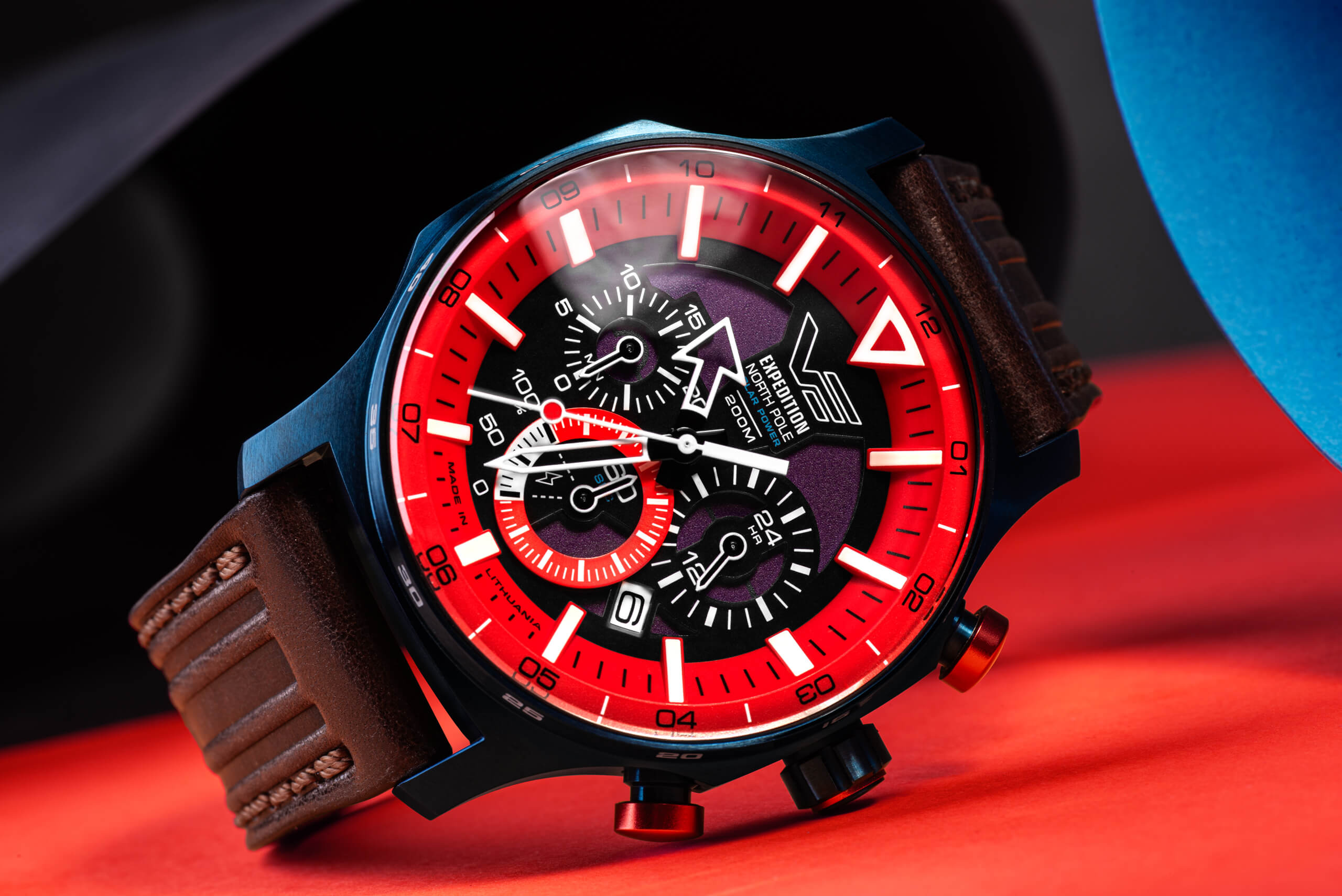 Zaprojektowane, aby sprostać odległym i trudnym warunkom z dala od cywilizacji, te zegarki to coś więcej niż tylko stylowe akcesoria – to praktyczne narzędzia stworzone z myślą o przetrwaniu na Biegunie Północnym. Żywe kolory tarczy sprawiają, że zegarek wyróżnia się na tle surowego, białego krajobrazu Arktyki.