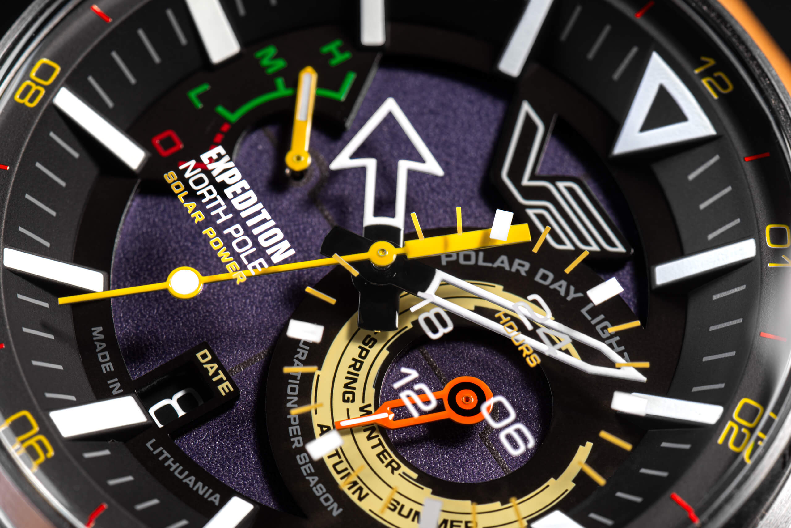 • Jegowielowarstwowa szkieletowana tarcza z luminescencyjnymi indeksamii szkieletowe wskazówki, zapewniające doskonałą widoczność zarówno w blasku arktycznego światła dziennego, jak i w ciemnościach polarnej nocy.
