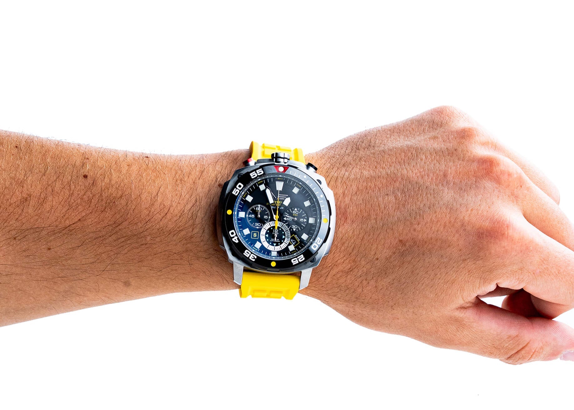 - Jasne,wielowarstwowa tarczacechyindeksy metalowe pokryte Super-LumiNova,zapewniając doskonałą czytelność w każdych warunkach.