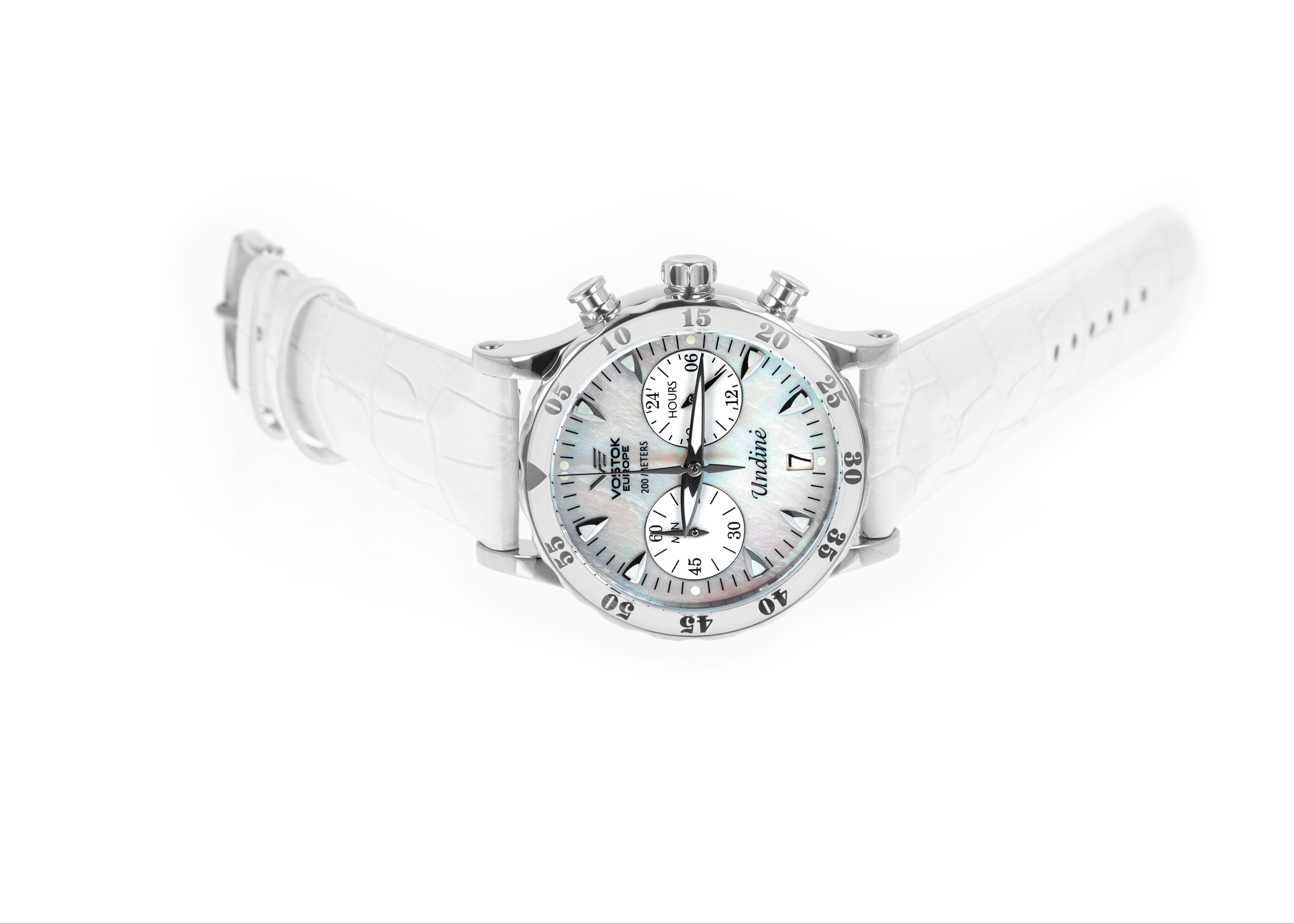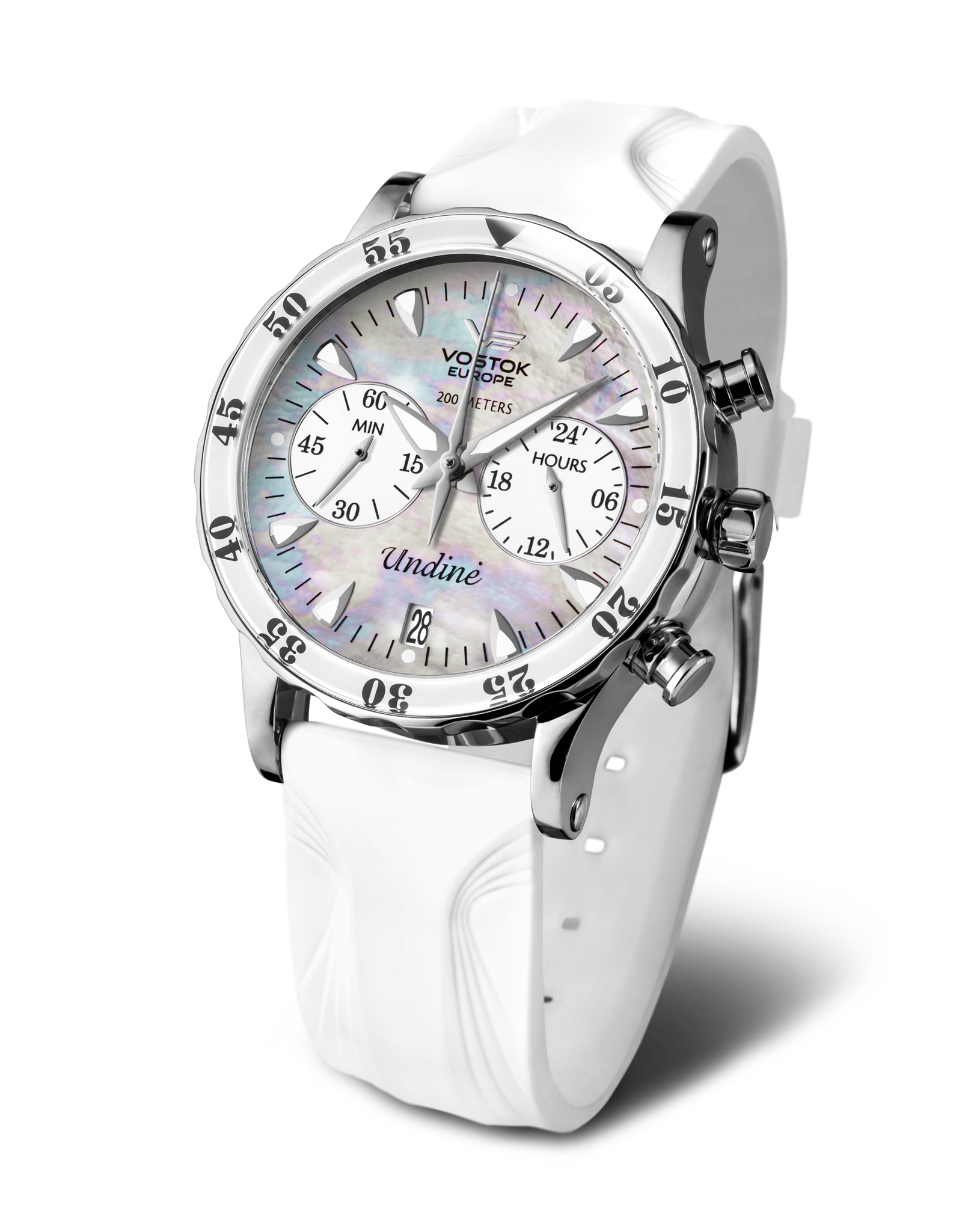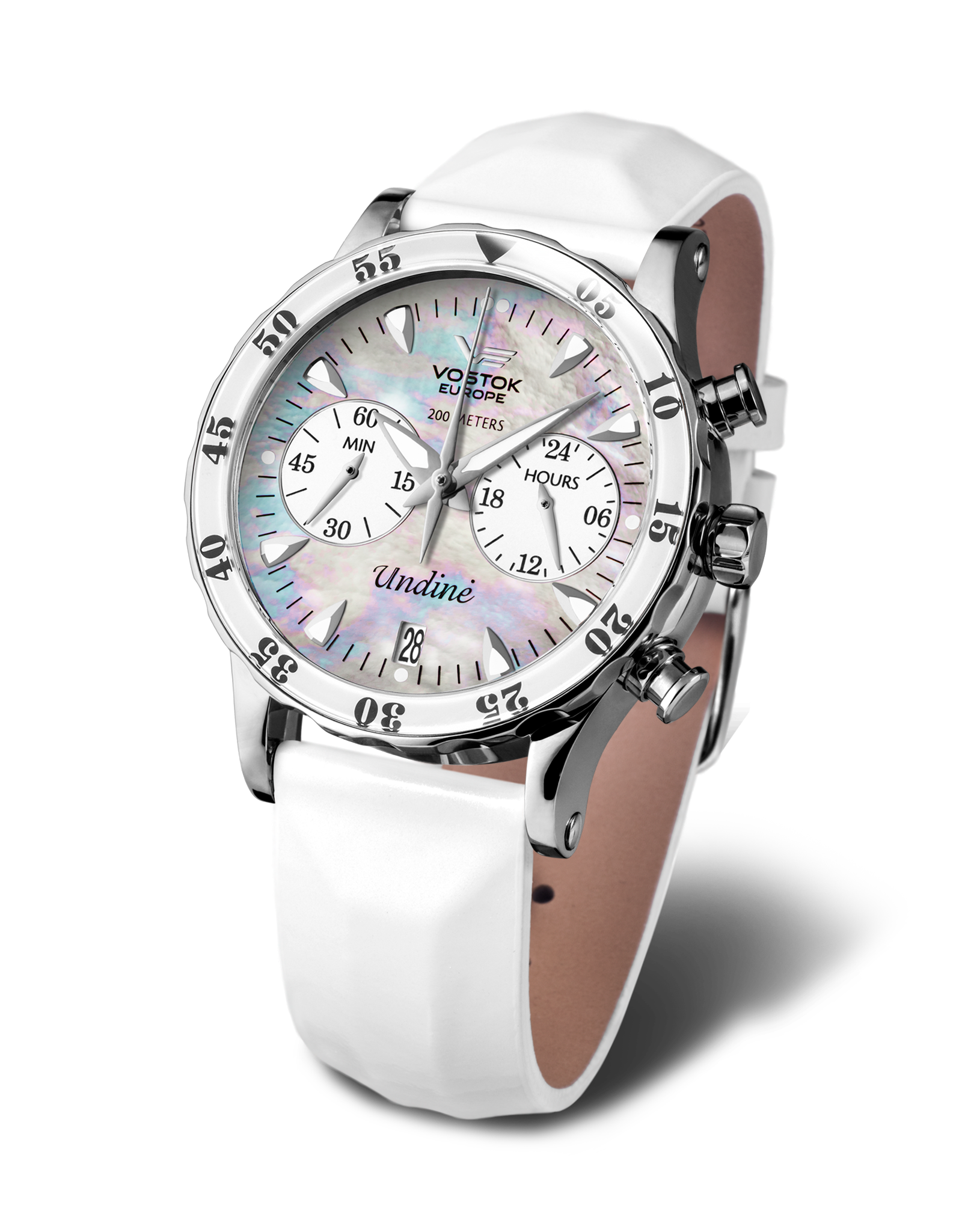 Obrotowy pierścień nurkowy i solidna wodoodporność do 20 barów (200 metrów) sprawiają, że zegarek jest równie praktyczny podczas aktywności na świeżym powietrzu, pływania, a nawet nurkowania, co na co dzień. Tarcza z masy perłowej jest chroniona trwałym szkłem K1, a luminescencyjne oznaczenia na polerowanych metalowych indeksach gwarantują doskonałą widoczność nawet przy słabym oświetleniu, przywodząc na myśl blask księżyca w zegarkach Undines.