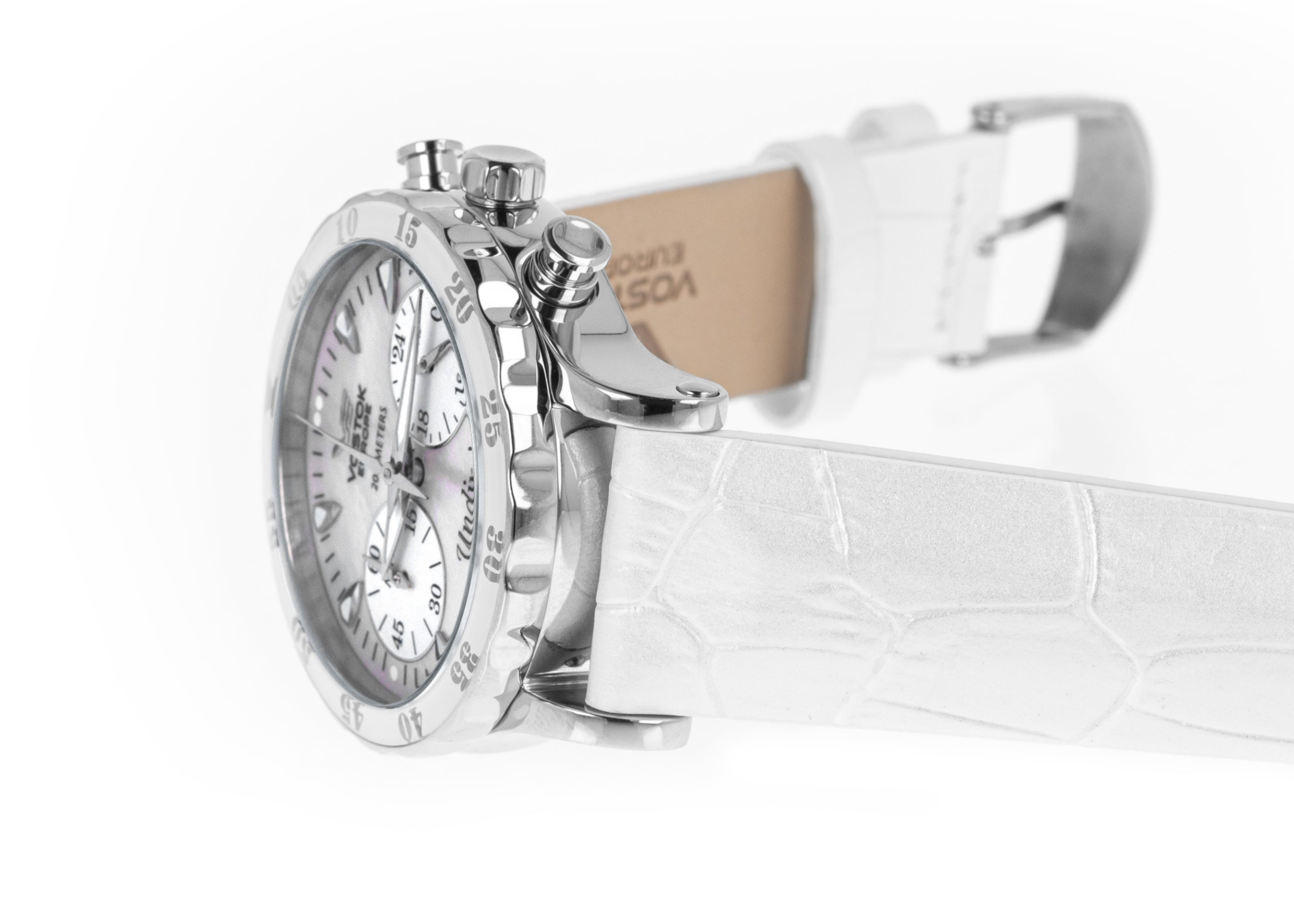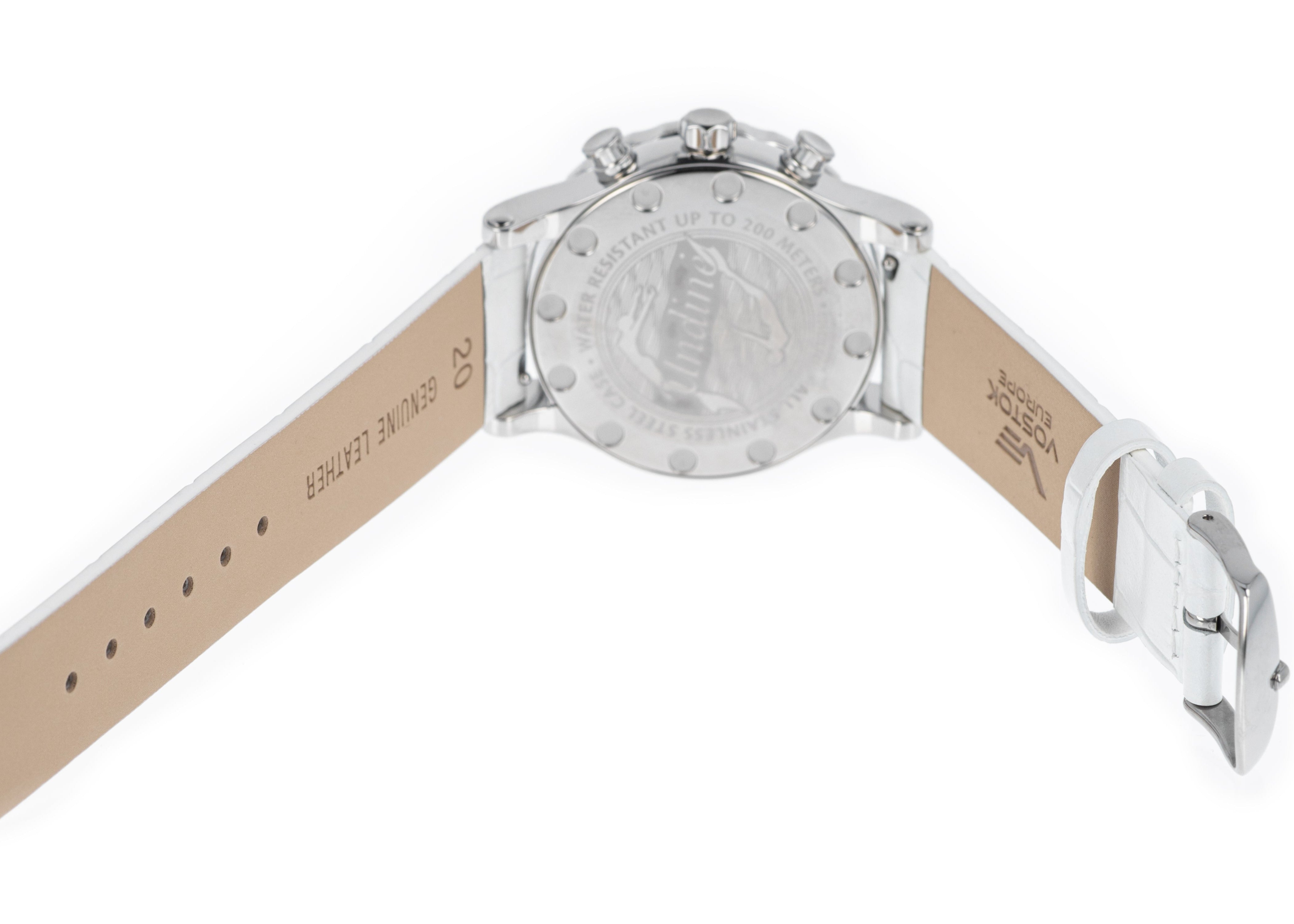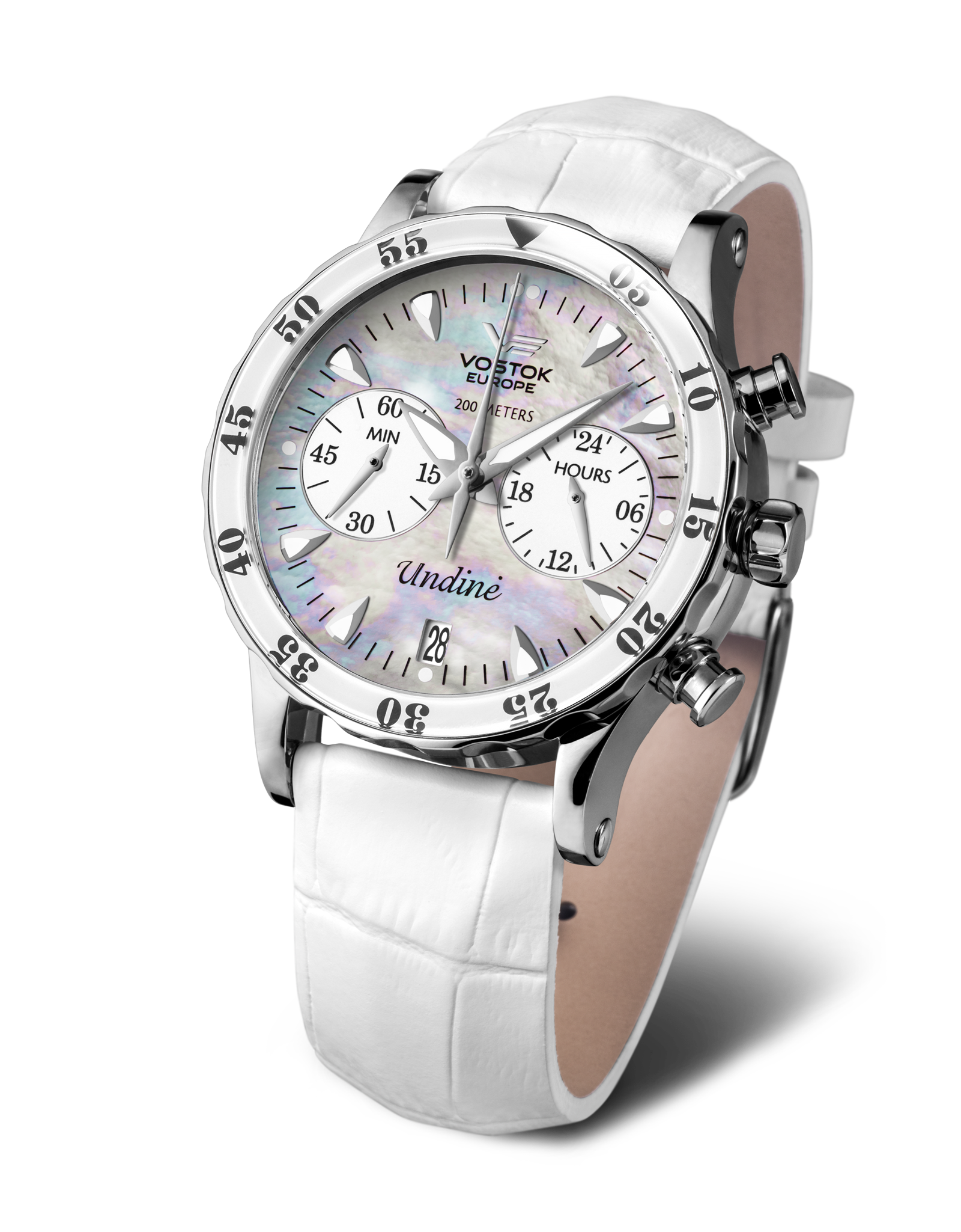 Obrotowy pierścień nurkowy i solidna wodoodporność do 20 barów (200 metrów) sprawiają, że zegarek jest równie praktyczny podczas aktywności na świeżym powietrzu, pływania, a nawet nurkowania, co na co dzień. Tarcza z masy perłowej jest chroniona trwałym szkłem K1, a luminescencyjne oznaczenia na polerowanych metalowych indeksach gwarantują doskonałą widoczność nawet przy słabym oświetleniu, przywodząc na myśl blask księżyca w zegarkach Undines.
