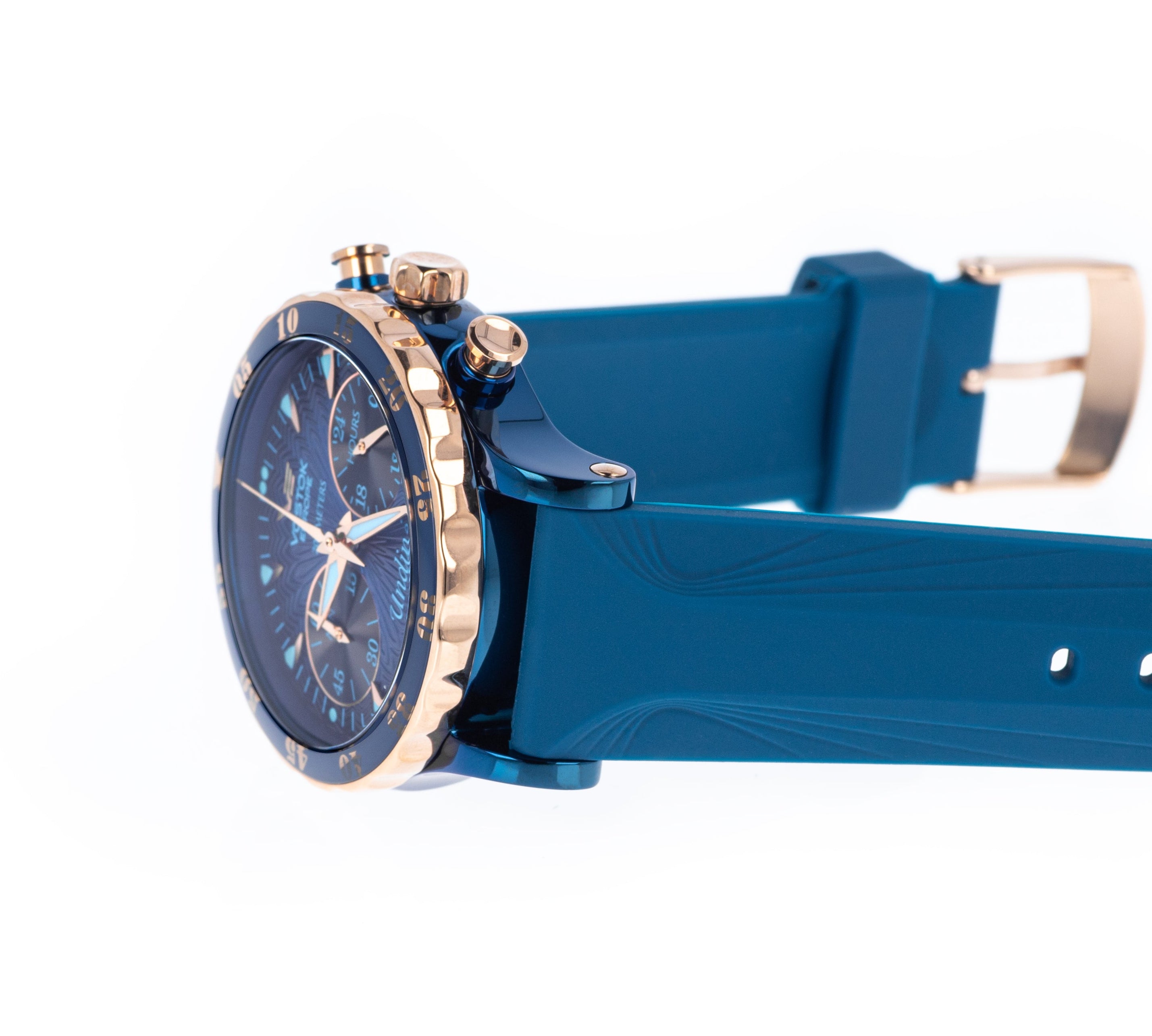 Ten zegarek to hołd dla kobiecej elegancji i tajemniczości połączonej z urzekającą mocą wody. Każdy zegarek jest wyposażony w wymienne paski z naturalnej skóry i silikonu, które można łatwo wymienić za pomocą szybkozłączek sprężynowych, co zapewnia maksymalną wygodę.