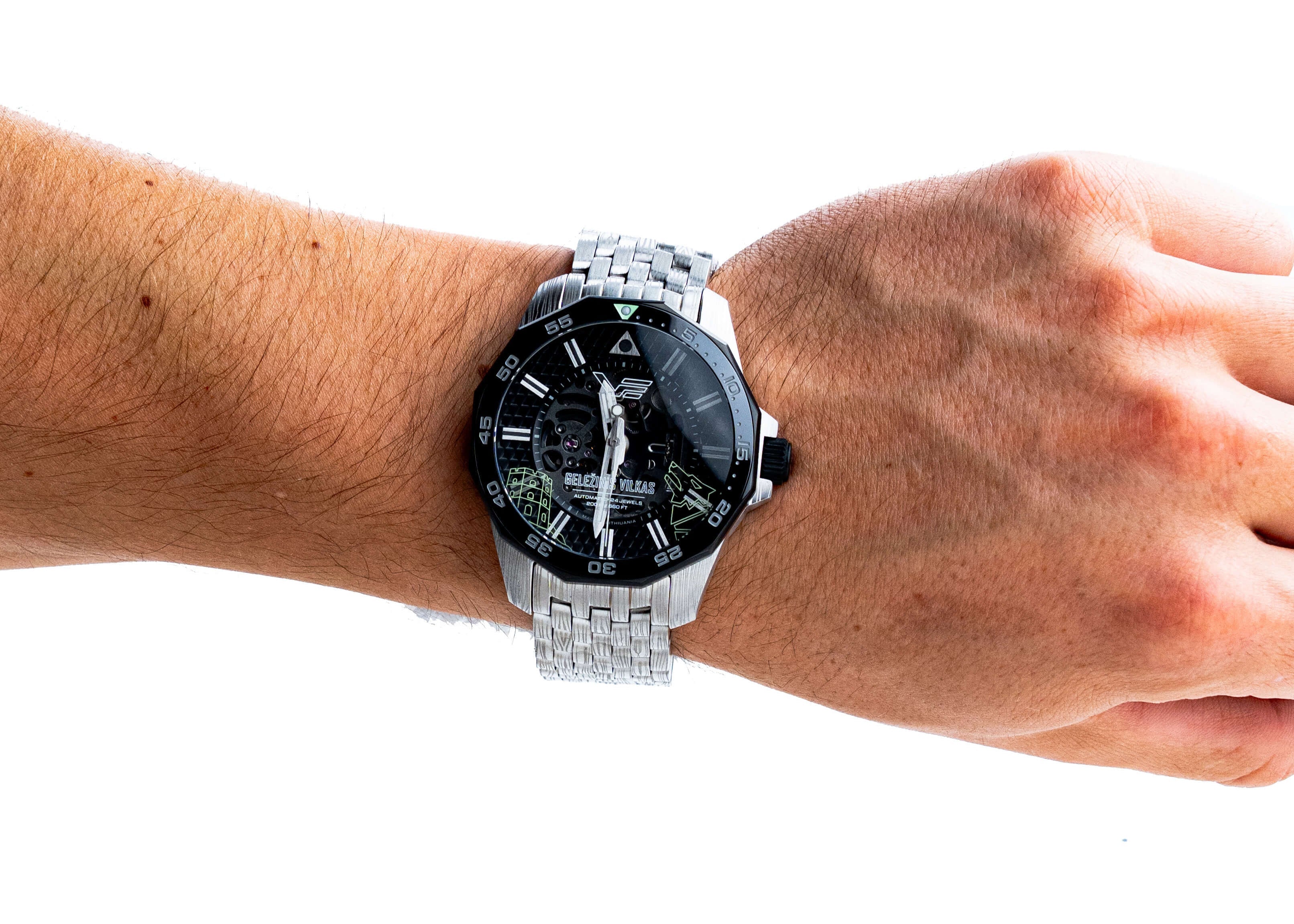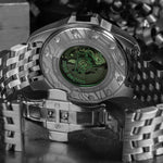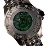• Fabricat dinoțel inoxidabil 316L,Carcasa și brățara solidă sunt împodobite cu o gravură distinctivă „Lână de lup”, evocând spiritul legendelor medievale.