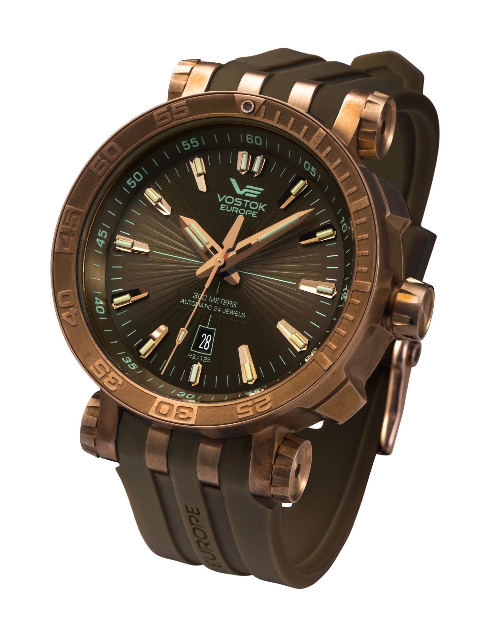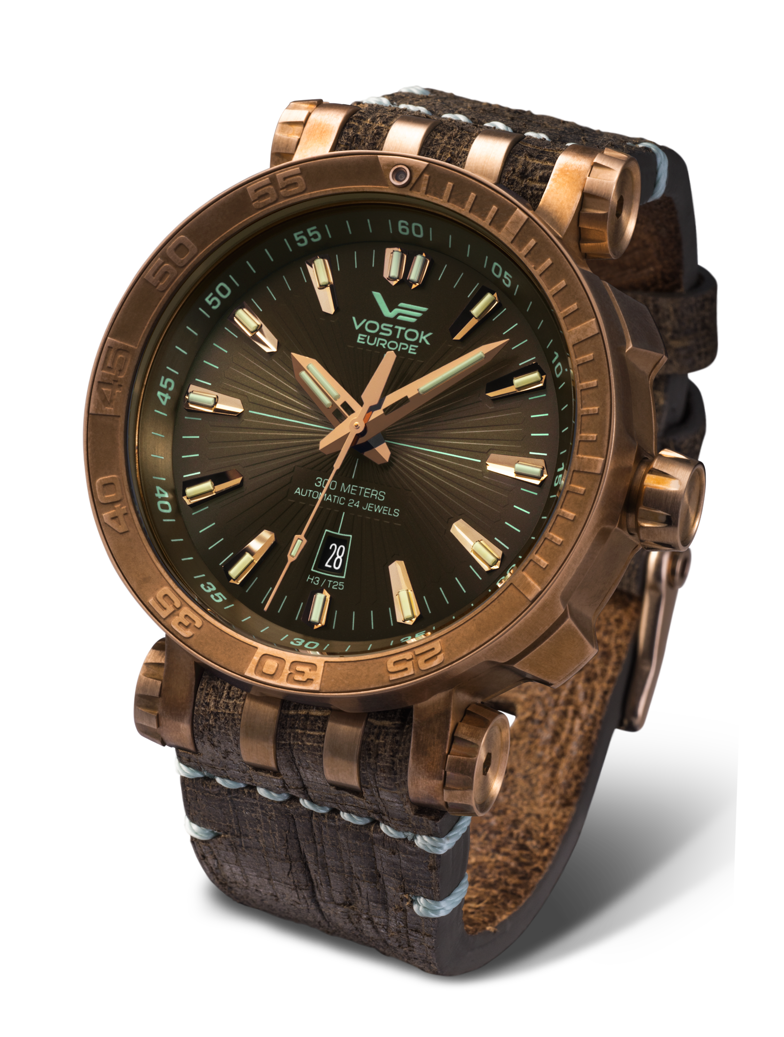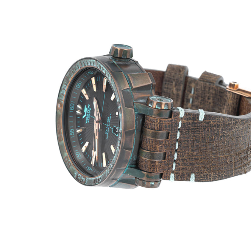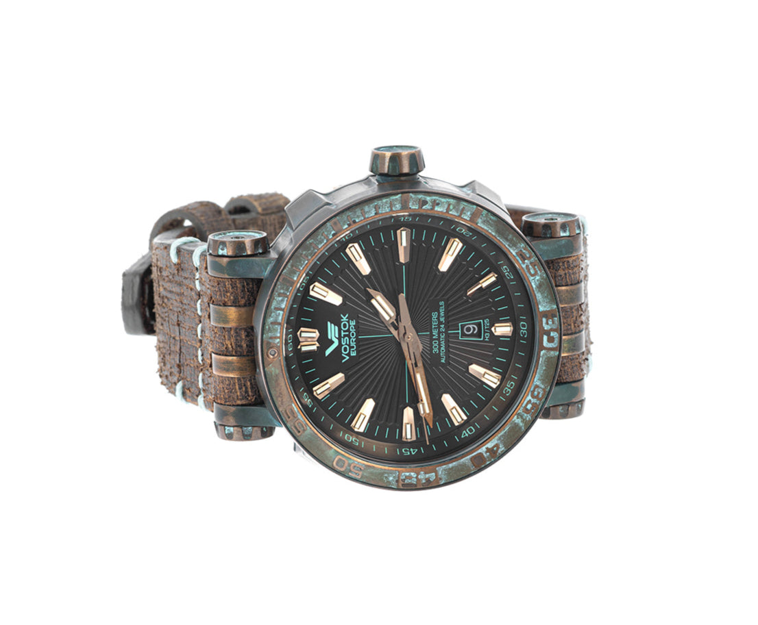 - Prezintă o unicăCarcasă de 48 mmrealizat din bronz autentic, un material specialCristal K1, iluminare cu tritiuși un fiabilMecanism automat japonez.