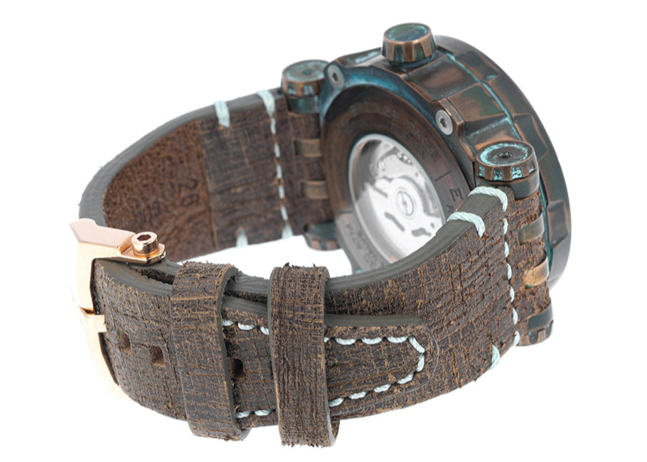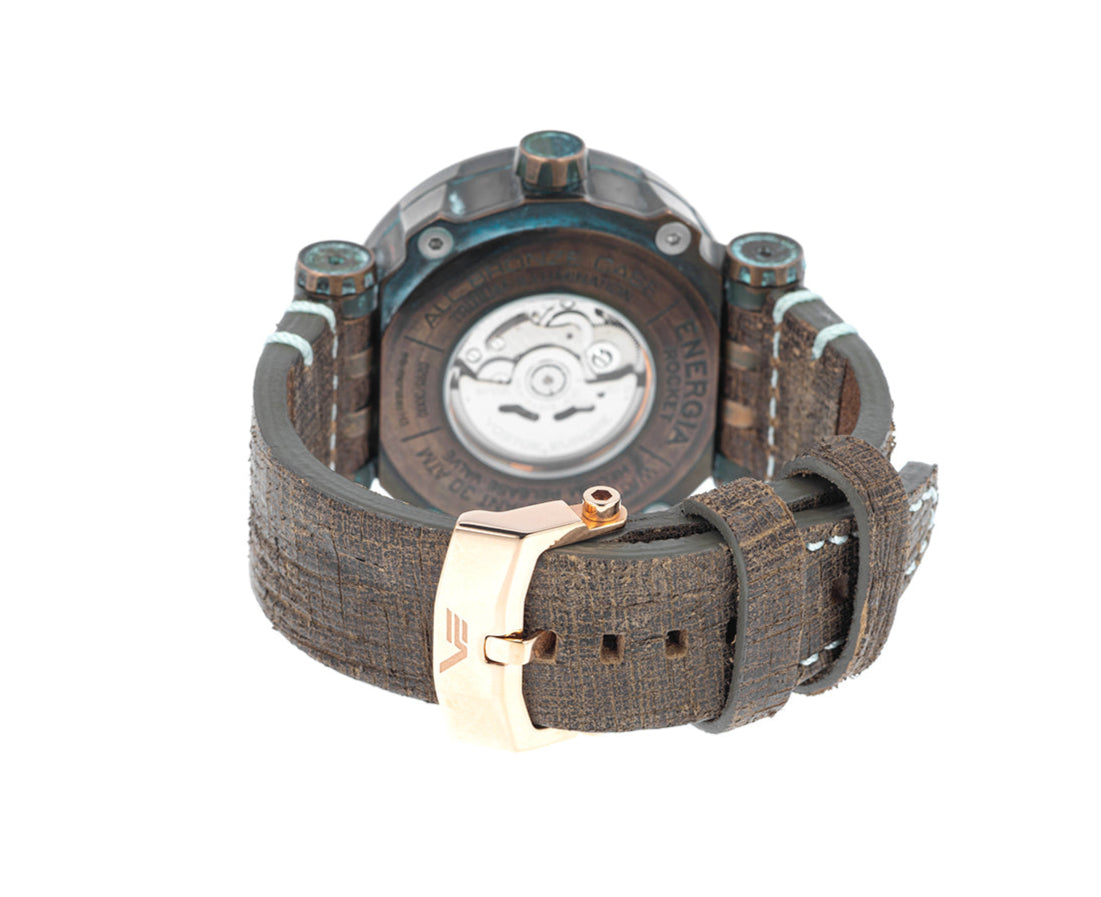 Datorită compoziției sale din cupru și staniu, metalul se oxidează în mod natural în timp, formând...„patină” unicăcare se dezvoltă după câteva săptămâni de purtare. Această patină face ca fiecare ceas să fie cu adevărat unic, cu variații distincte de culoare, unice pentru fiecare proprietar.